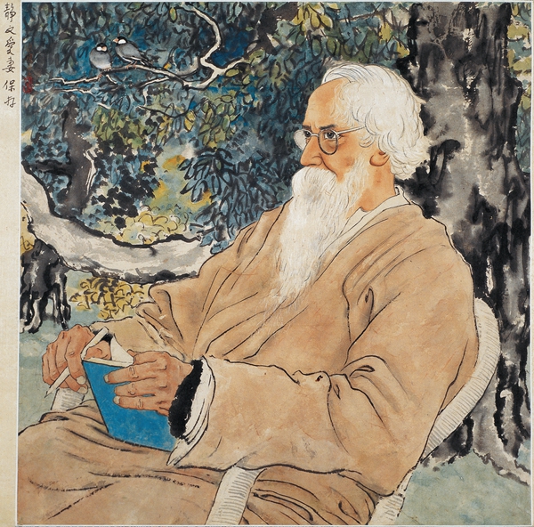 泰戈尔像(水墨设色)1940年 徐悲鸿