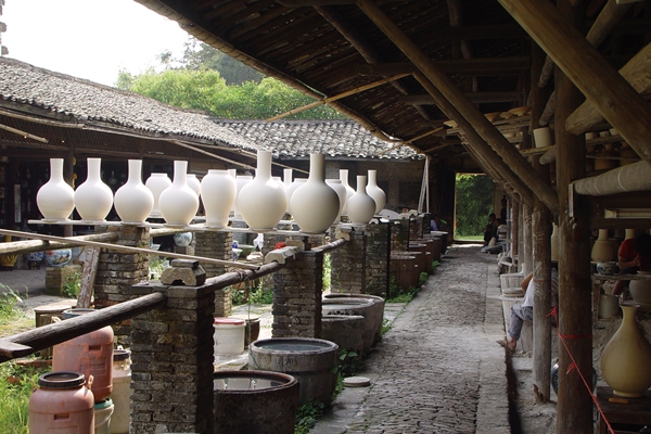 As the distribution center for the ceramic industry, Jingdezhen’s porcelain workshop culture has become the most characteristic culture of the ancient town. Since ancient times, the Jingdezhen porcelain workshops have showcased special uniqueness with integrated equipment. The workshop is normally composed of granary, inner courtyard, mud room and central room. The layout of its porcelain making process is also entirely based on the actual needs of hand-made porcelain production. The design of the workshop is very scientific, combining the technological requirements with the climate characteristics of Jingdezhen: facing south provides a long period of sunshine. It benefited from the southeast monsoon and made it possible to make billets on the wooden shelves of the drying racks with the most adequate drying conditions. Below the billet lies a small pond for storing rainwater, and the production water for kneading and muddy materials is taken from the pond. The entire workshop makes full use of the best combination of time and space and natural energy. This unique structure of the blank house could be considered a masterpiece in the architectural culture of China and the world at large.