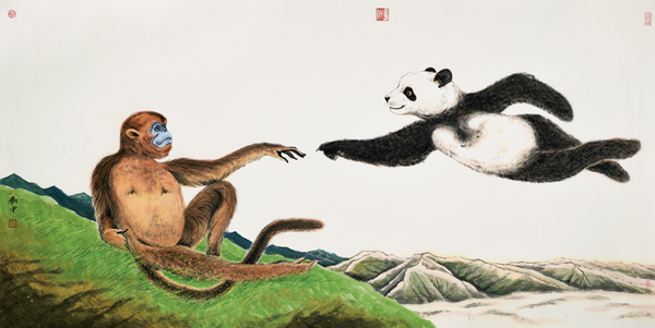 除了是一名画家,刘中还有另一重身份——四川邮政成都熊猫邮局名誉局长、河北邮政山海关长城主题邮局名誉局长,与中国邮政合作设计、发行多套主题邮票、明信片——《我爱长城》《双宝图》《珍爱环境,和谐共存》《大熊猫》等,每一幅作品都极具特色和观赏性,无不体现着刘中对动物的喜爱和对自然的深情。刘中说:“邮票和明信片是一个国家的名片,民族性很强,通过邮票可以展示中国悠久的历史和绚丽多彩的文化艺术。同时,邮票是情感的传递,它的价格不高,作品不是高高在上的,普通百姓可以收藏,可以与百姓进行交流。”