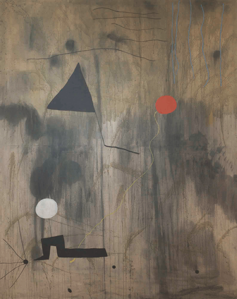 1893年出生于西班牙巴塞罗那的胡安·米罗是与毕加索、达利齐名的20世纪超现实主义绘画大师之一。1925年,米罗对诗歌、创作过程和材料实验产生了强烈的兴趣,于是激发了他创作《世界的诞生》。这件作品反映了偶然与计划之间的结合。作品尺幅巨大,米罗在画布上涂了不均匀的底漆。接着,他又在画面上添加了一系列象形符号,这些符号将先锋诗歌中破碎的句法、星象空间和梦幻般的意象,转化为一种极富想象力和创造性的绘画形式。他后来把这部作品描述为“某种形式的创世纪”。