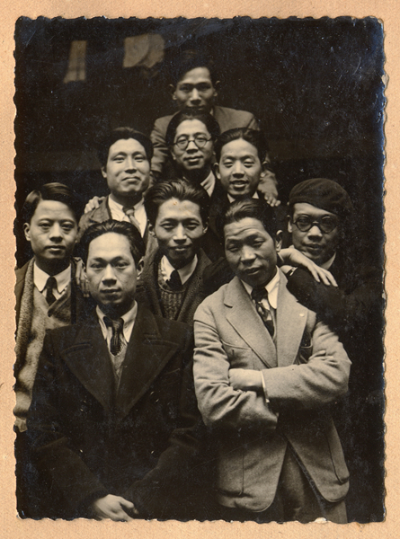 1935年滑田友在巴黎与中国同学合影,前排左起:曾竹韶、廖新学;二排左起:黄显文、吕斯百、唐一禾;三排左起:滑田友、常书鸿、陈士文;后排:王临乙。