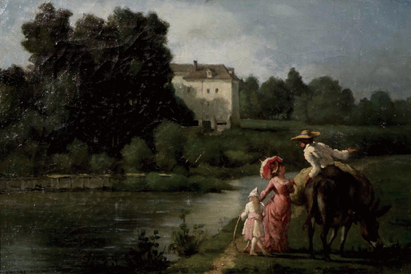 The lady and knight on the riverside (oil on the canvas) 1878 Adolphe Lalyre