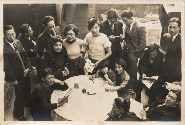 In 1936 in Paris, members of the conference of Chinese Students' Association in France discussed about to participate in the exhibition in London. From the left of back row: Li Ruinian, Zhou Qingding, Zeng Zhushao,Ma Jiyu, Chen Zhixiu; from the right of back row: Zhang Ziyu, Lv Xiaguang, Chen Shiwen, Huang Xianzhi; from the right of front row: Hua Tianyou, Wang Ziyun; from the left of front row: Zhang Xianfan, the little girl is Chang Shana.