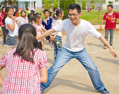 30岁的张俊智,老家在浙江金华,2008年硕士毕业后到上海宝钢工作,收入不菲。2012年在一次乘地铁时,一段公益广告的美妙旋律,点燃了他多年以来一直存有的支教梦想,那首歌名字叫《谢谢你》。