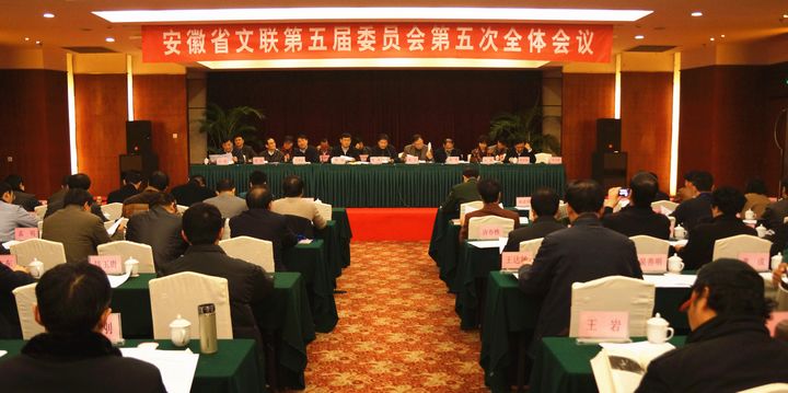 2月26日,省文联五届五次全委会在合肥召开。省委宣传部副部长郎涛;省文联主席季宇,党组书记、书记处第一书记陈田,副主席马雷、方茂鸿、王艳、王章好、朱建平、吴雪、张松、张甦、张居淮、李慧桥、唐跃、钱念孙、黄新德,副巡视员江枫出席会议。会议传达了中国文联九届四次全委会和全省宣传工作会议精神。在上午的全体会议上,郎涛发表讲话,陈田受主席团委托作题为《培育精品大家 发展文化产业 努力为建设文化强省作出新贡献》的工作报告,季宇主持会议。会议选举陈田为省文联第五届主席团副主席