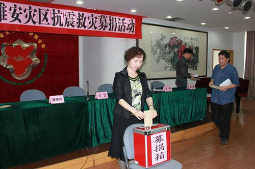 省文联积极发动干部职工开展向雅安地震灾区献爱心捐款活动