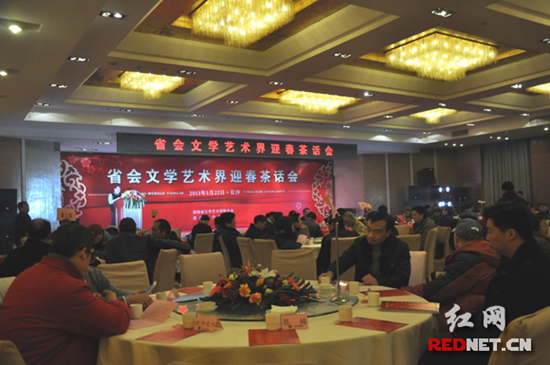 (在长沙举行的湖南省文学艺术界迎春茶话会开风气之先,160余名省会文艺家和文艺工作者欢聚一堂,共品清茶,话旧岁迎新春。)