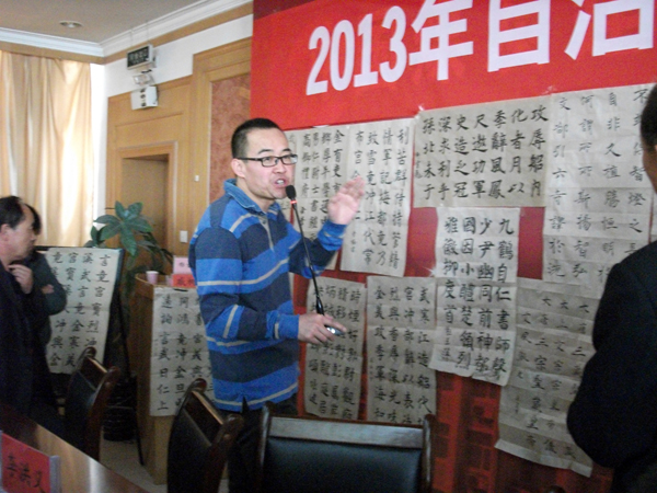 为弘扬中国书法传统艺术,提高中小学教师书法教学水平,促进书法教育的普及,由自治区教育厅主办,宁夏书协负责具体培训教学工作的2013年自治区第一期中小学书法教师培训班于4月20日在宁夏师资培训中心正式开班,宁夏文联党组书记、主席郑歌平,宁夏书协常务副主席李洪义出席了开班仪式。