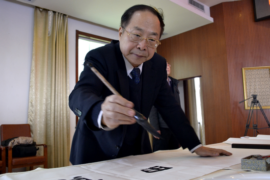 “五牛图”是山西大众书画院副院长张怀文精心所创,他笔下的健硕之牛,或筋骨毕露疲惫力田,或耸肩抵尾横去斜奔,或不骄不躁沉默坦然,皆笔墨苍健酣畅,浑朴遒劲,终生劳瘁,事人而安不居功。这时,几个战士们抬着国防教育训练中心大门巨幅春联“能打仗打胜仗铸龙城精兵、建窗口创一流卫省城平安”,“世纪神州添锦绣,蛇年伟业更辉煌”,大家都被由省文联党组副书记、省书协主席石跃峰创作的气势磅礴的书法作品所震撼,这些催人奋进的作品与军队昂扬的斗志、顽强的作风相得益彰。
