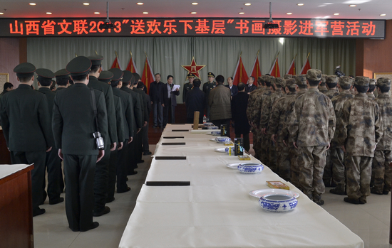 新春的脚步声清晰可闻,浓浓的年味儿扑面而来。2月6日(农历腊月二十六),由山西省政协常委、省文联党组书记、省书协副主席张根虎带队,山西省文联、山西大众书画院与山西省书法家协会、山西省美术家协会、山西省摄影家协会组成的“送欢乐下基层书画摄影进军营”慰问团一行30人,带着党和政府的温暖来到太原市国防教育训练中心进行慰问和文化服务,为这里的官兵们送上一份丰富的节日文化大餐,受到广大官兵的热烈欢迎。