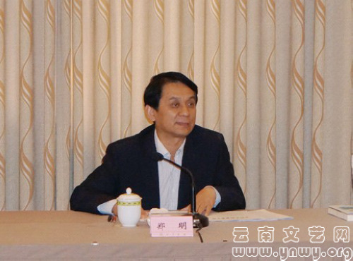 郑明向中国文联调研组作了专题汇报。近年来,云南文联的文艺工作在省委、省政府领导的高度重视和亲切关怀下,在中国文联的有力指导下,领导重视,措施得力,成绩斐然:云南文苑的建设、出台《中共云南省委关于加强和改进新形势下文联和文艺工作的意见》、评选《云南省杰出艺术家奖》、《云南省德艺双馨文艺家奖》、中国·东南亚·南亚电视艺术周、中国聂耳音乐合唱周等受到全国瞩目,产生了广泛影响。但是在新的形势下,云南文联和文艺工作还存在少数地方党委重视不够、文联的体制、机制不够完善,职能、任务不够明确、文联干部队伍建设有待加强、文艺维权难度大、文艺理论评论环境不够好、基层文联组织发展不平衡等一系列问题和困难。郑明提出了争取中央出台“加强和改进新形势文联和文艺工作的意见》、设立国家级文艺大奖、制定互联网文艺作品管理条例、进一步支持办好中国·东南亚·南亚电视艺术周、请全国文艺家协会支持云南文苑建设等建议。