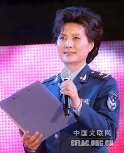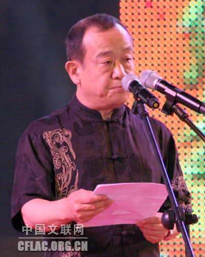 5月27日晚,“百花放映·红色之旅”大型电影惠民活动重庆市璧山县体育中心开幕。图为著名演员温玉娟朗诵。中国文联网 董大汗 摄