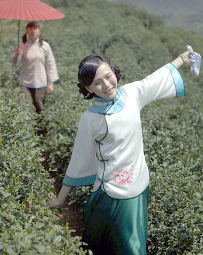 在影片中尹逸白与阿敏的关系是作者最成功的叙事玄机。即便就是在苍翠欲滴的茶园里结伴而行的时候,俩人总是一个在前,一个在后。导演多次以变焦镜头表现阿敏和尹逸白的这种暧昧关系:不是尹逸白停留在阿敏的视线之外,就是阿敏不在尹逸白的焦点之中。这种相互交错的虚幻影像,强化了他们之间感情关系的不确定性。几乎被主流电影公式化的影像语汇锁定的电影观众,也许更看不清这两个人究竟是一种什么关系。尹逸白时常像一个影子伴随在阿敏生活的左右。有时带来的是惊喜,有时带来的是郁闷。他们的情感真正明朗的那一刻,正是这种崇高、绚丽的情感被毁灭的时刻!阿敏目睹了尹逸白被日寇残酷绞死的全过程!这才使她彻底明白自己痛恨不已的汉奸原来是个大义凛然的抗日英雄!尹逸白看见了藏在茶树丛中凝视着自己的阿敏,他报之以微微的一笑。此时的阿敏已经肝胆欲裂,咬破的手指流出的是血也是泪!