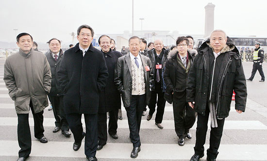 11月22日上午,参加第九次全国文代会的澳门特邀代表正走向人民大会堂参加大会开幕式。中国文艺网 孟祥宁 摄