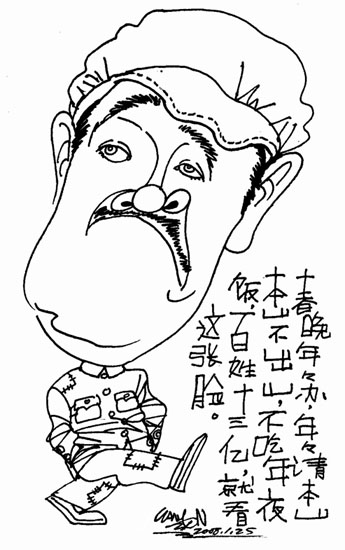 有关瓶颈的比喻,也开始与春晚相互纠缠,如影随形。何为瓶颈?某事物中关键性的制约因素也。有学者直言,春晚瓶颈就是赵本山。去年,记者问与央视导演马东有过一番舌战的肖鹰教授说:“为什么就揪着赵本山不放?”肖教授回答:“第一,他太重要了;第二,他的问题也太大;第三,他的影响太严重。要将春晚从目前的困局中拔出来,赵本山这个问题一定要解决。”此言也意味着另一个事实,20年来,老赵那张自称“猪腰子脸”确是春晚的“笑源”之一,与他先后出现的陈佩斯、赵丽蓉、宋丹丹、范伟,堪称春晚历史上最有人气的五张喜剧脸谱。而今赵丽蓉老师仙去,陈、宋、范背影决绝,义无反顾,只剩下老赵一脸沧桑,四顾茫然,貌似热热闹闹的春晚舞台竟变得如此空旷清冷。他只有寂寞坚守,孤独求败。但我相信,以赵本山的过人聪明,不会不明白树大招风的危险,不会不懂得见好就收的道理,他完全可以在艺术的巅峰期完成华丽转身,供后来者高山仰止。