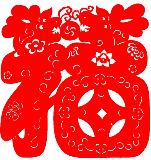 《龙福献瑞》是以中国传统文化书画同源的理念创作完成的,用剪纸艺术的特有语言和装饰纹样,彰显“龙”与“福”字造象博大精深的吉祥文化内涵。使整幅图像含纳并传播着“龙福献瑞,人间大吉”的中国象形思维和“和谐繁荣,生生不息”精神境界。《龙福献瑞》图首先采用阴阳相合的凤、凰,组成“二龙戏珠”的典故造象;其次剪出一个具备“多子、多财、多福、多田、多寿”的如意大“福”字;再用剪纸艺术的吉祥符号,镂现象征春天的兰花、夏天的荷花、秋天的菊花、冬天的梅花,以及宏大的宝瓶与祝贺四方的蝙蝠和代表天圆地方的喜庆贯钱、富贵牡丹、如意祥云、宝珠万字、长寿仙桃等。《龙福献瑞》全图,给观众传达出“双龙喜祝,更新万象,五福呈祥,世代富强”之美好寓意。