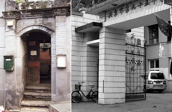 上图左:北京大外廊营旁1号谭鑫培故居。上图右:位于北京韩家胡同的95中学是李渔故居所在地。