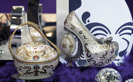 3月26日在第二十届中国国际服装服饰博览会上拍摄的香港鞋款设计比赛获奖作品“月满皇纱”女鞋。当日,第二十届中国国际服装服饰博览会在北京新中国国际展览中心举行,同时展出第十二届香港鞋款设计比赛获奖作品。据悉,本届中国国际服装服饰博览会将于3月29日结束。新华社发 罗伟 摄