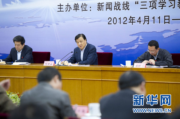 4月11日,中共中央政治局委员、中央书记处书记、中宣部部长刘云山在北京出席发扬“走转改”精神、深化“走转改”活动研讨会并讲话。新华社记者王晔摄