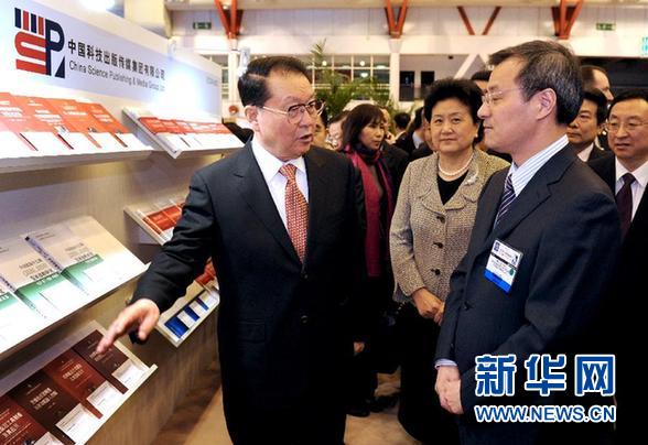 4月16日,正在英国进行正式友好访问的中共中央政治局常委李长春在伯爵宫参观伦敦书展中国主宾国展区。中共中央政治局委员、国务委员刘延东陪同参观。新华社记者 马占成 摄