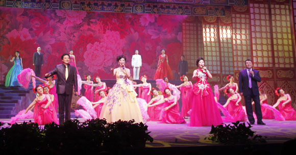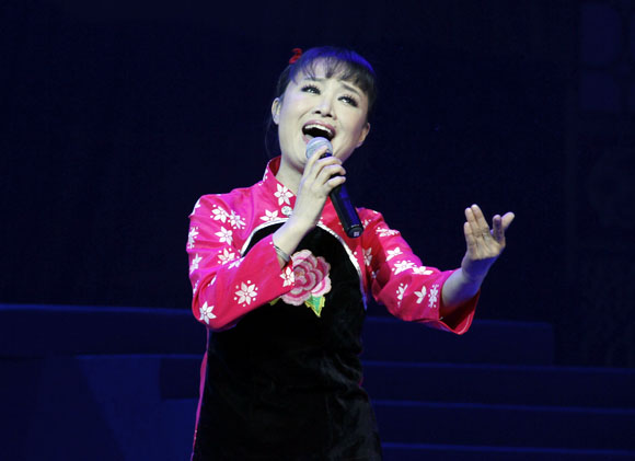 5月8日晚,由中国文联、中国剧协等单位精心组织的第一场大型演出“中国戏剧家延安行”文艺晚会在延安解放剧院举行。图为韩延文演唱歌剧《白毛女》选段。中国艺术报 彭宽 摄