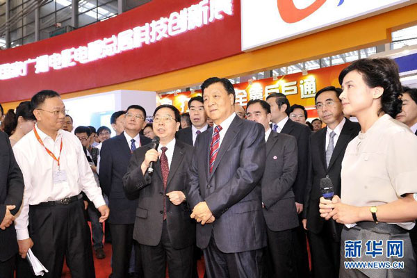 5月18日,为期4天的第八届中国(深圳)国际文化产业博览会在深圳开幕。中共中央政治局委员、中央书记处书记、中宣部部长刘云山出席开幕式并宣布大会开幕。这是刘云山在参观第八届文博会展览。 新华社记者 梁旭 摄