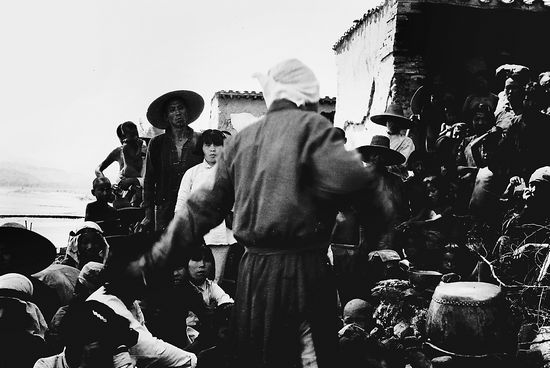 阜平高街村剧团自编自演《穷人乐》 1944年 汪洋 摄