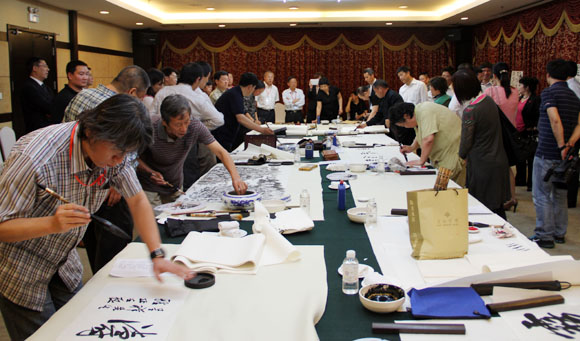 5月25日晚,中国文联文艺志愿服务团书画家笔会创作