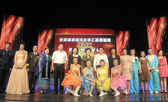 5月22日,“全国道德模范故事汇”基层巡演2012福建福州专场中,出席观看晚会的领导与演员合影。刘红英 摄