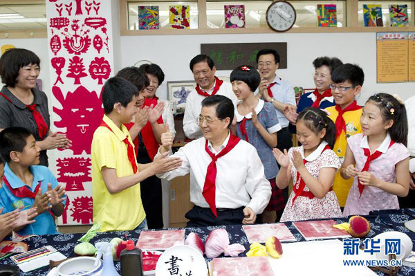 “六一”国际儿童节到来之际,中共中央总书记、国家主席、中央军委主席胡锦涛5月31日上午前往北京市东城区少年宫考察,亲切看望在这里参加活动的小朋友们,代表党中央,向全国各族少年儿童表示节日的祝贺,向全国广大少儿工作者表示崇高的敬意。