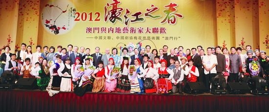 参加“2012濠江之春——澳门与内地艺术家大联欢”中国文联、中国剧协梅花奖艺术团“澳门行”活动的领导、艺术家与嘉宾合影。