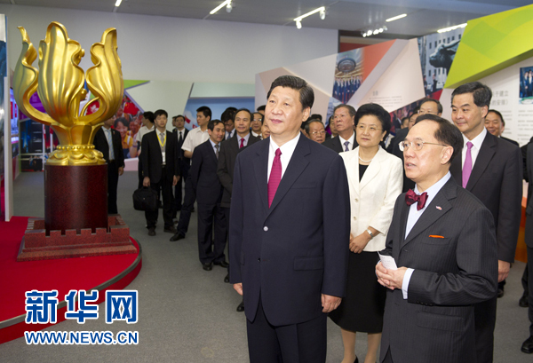 随后,习近平等在曾荫权、梁振英陪同下,兴致勃勃地参观了展览。习近平表示,这次展览是庆祝香港回归祖国15周年系列活动的一个组成部分,很有意义,展览办得很好、很精彩。通过展览,可以让内地民众更直观地了解香港回归以来的发展变化和取得的成就,有助于增进大家对“一国两制”的认识和信心,增强对香港与内地未来共同繁荣发展的信心。