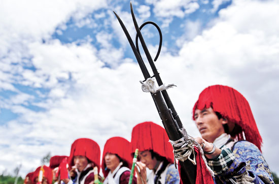 近日,西藏山南地区贡嘎县吉那乡农民身着盛装,欢度一年一度的“望果节”,祈祷五谷丰登。在藏语里,“望”意为田头,“果”意为转圈。望果节,就是绕田地转圈、祈求丰收的节日。如今的“望果节”已从宗教仪式为主的传统农耕文化节日演变为以赛马、歌舞、文艺、体育、商贸集于一体的节日,丰富了藏族农民的物质文化生活。