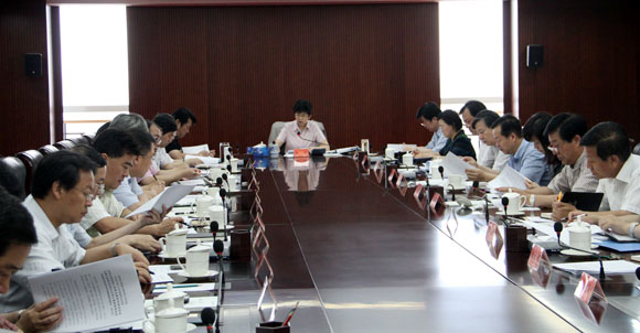 7月26日,中国文联召开党组扩大会议,传达学习胡锦涛总书记在省部级主要领导干部专题研讨班开班式上的重要讲话和全国宣传部长座谈会会议精神。图为中国文联党组书记、副主席赵实主持会议。中国文艺网 董大汗 摄