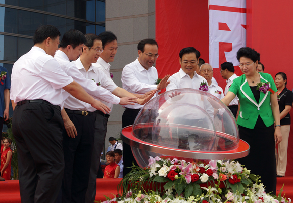 第七届中国(长春)民间艺术博览会8月3日在吉林省长春市开幕,吉林省委书记孙政才、省长王儒林出席开幕式并启动开幕式水晶球 莫保平 摄