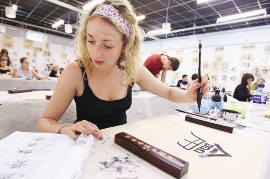 课程只有短短三周时间,如何让不通汉语的外国人也能掌握一定的书法技巧,在较短时间内能体验中国文化的丰富思想和中国书法的魅力?从2010年暑假第一期授课开始,中国人民大学“暑期国际小学期(International Summer School)”书法班对此进行了尝试和探索。