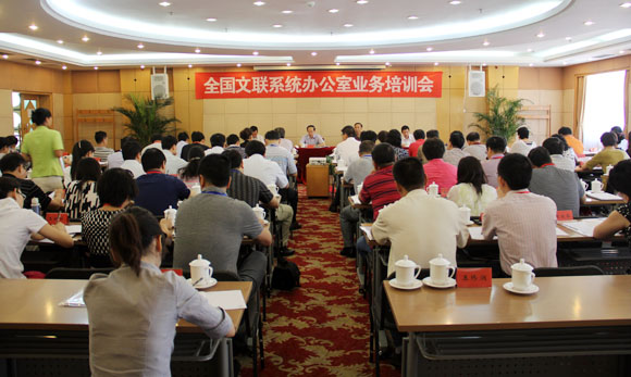 全国文联系统办公室业务培训会8月13日至15日在京举行。来自各全国文艺家协会、各省区市和新疆生产建设兵团文联、各产业(行业)文联、各副省级城市文联及中国文联机关各部室、各直属单位办公室(综合处)人员90余人,结合文艺事业和文联工作实际,围绕如何以改革创新精神做好新形势下文联办公室工作,以便更好地服务于文联工作大局,通过专家讲座、分组讨论、交流发言、参观考察等多种形式进行了培训。中国文联党组成员、副主席左中一出席开班式并作开班辅导动员讲话。中国文联办公厅主任夏朝华主持开班式。