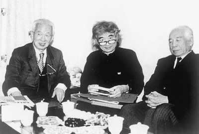 《金色记忆》一书中收录的照片:小泽征尔与吴祖强(右)、指挥家韩中杰(左)的合影