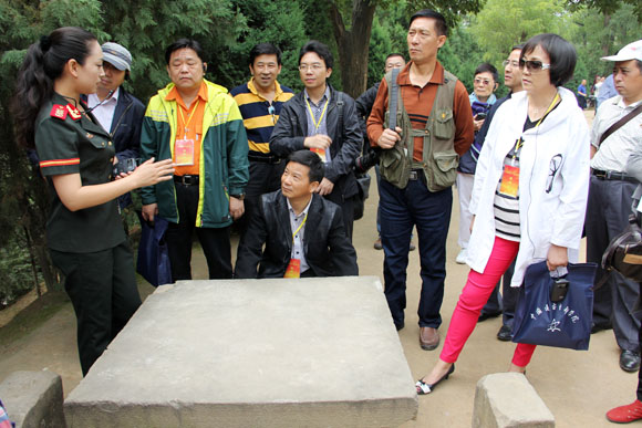 学员在杨家岭感受革命先辈艰苦奋斗的作风。图中石桌为当年毛泽东和斯特朗谈话的地方。。中国艺术报 金涛 摄