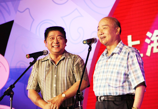 图为王汝刚、李久松表演独脚戏《爱心》。中国文艺网 董大汗 摄