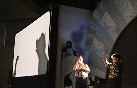 图为焦建东、石磊表演手影《逗趣》。中国文艺网 董大汗 摄