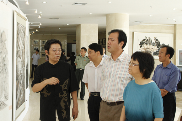 中国文联党组成员、副主席杨承志,中国文联党组成员、书记处书记夏潮等观看展览 中国文艺网 刘刈 摄