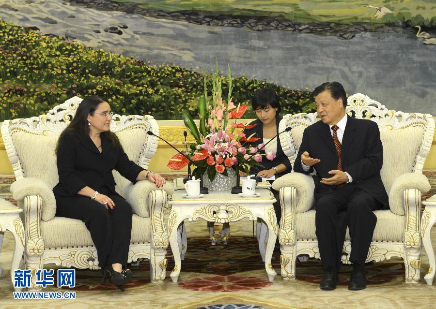 9月19日,中共中央政治局委员、中央书记处书记、中宣部部长刘云山在北京人民大会堂会见墨西哥总统府新闻局局长索塔一行。新华社记者饶爱民 摄