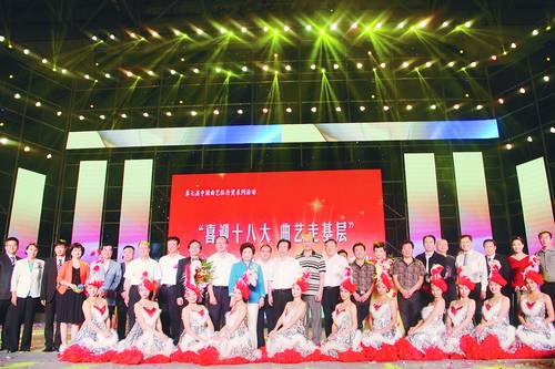 其中,中国曲艺名家“送欢笑、到基层”——走进高淳是中国曲协一项品牌性惠民文化活动,该项活动已列入第七届中国曲艺牡丹奖颁奖系列活动,参加演出的刘兰芳、师胜杰、石富宽、奇志、大兵、郭达、闫淑平、佟长江、刘全和、刘全利等著名表演艺术家通过精彩的表演,把欢笑送到基层,让基层观众在欢声笑语中享受艺术、陶冶情操。李前光在致辞中说,“送欢笑、到基层”活动是在中宣部和中国文联指导下,中国曲协精心组织的一项公益性文化惠民活动,也是广大曲艺家自觉树立文艺界核心价值观、模范践行中国文艺工作者职业道德公约,主动承担文艺为人民服务这一历史责任的重要举措。今天的演出既是让高淳观众共享牡丹盛典带来的精彩和快乐,同时也让来此演出的艺术家们切实感受到高淳人民的纯朴和热情。中国曲艺牡丹奖落户江苏,反映了江苏省委省政府对文艺事业和曲艺事业的高度重视,同时也对江苏曲艺事业的发展、文化强省的建设起到了重要推动作用。我们相信,这种良好的发展态势会使“金陵牡丹”绽放得更加艳丽、更加夺目。