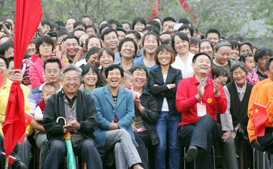 演出在濮阳市杂技艺术学校、濮阳市杂技团等表演的歌舞《龙腾神州》的喜庆旋律中拉开帷幕。姜昆与戴志诚合说的相声《欢歌笑语》,姜克美表演的京胡独奏《夜深沉》,中国杂技团有限公司带来的杂技《俏花旦——抖空竹》,刘兰芳演出的评书《张飞请孔明》,汪荃珍演唱的豫剧《抬花轿》选段,遂宁市杂技团演出的杂技《比翼——双人倒立技巧》,高保利演唱的《山丹丹开花红艳艳》,刘全和、刘全利带来的滑稽小品《兄弟拍电影》,焦健东、石磊表演的口技,济南市杂技团演出的《空中彩绸》,李彦培带来的《变脸》,殷秀梅演唱的《在希望的田野上》以及她与毋攀合唱的《走向复兴》等节目,在牛群、鞠萍幽默诙谐的主持串联下一一奉上。台上演员卖力地演出,台下观众们脸上洋溢着开心的笑容,这些观众来自濮阳的各行各业,有石油工人,有医护人员,有公安干警,有老师和学生,有农民、外来务工人员……而坐在观众席第一排身披红色绶带的老红军、优秀党员、道德模范和劳动模范,尤为抢眼。最后,演出在现场两万余人共同高歌《歌唱祖国》的壮观景象中落下帷幕。“看了今天的演出,我的心情可以用一句歌词来形容:咱老百姓今儿个真高兴!”濮阳市人民医院的小张护士脸上露出一个大大的笑容。