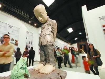 昨天,在通州上上国际美术馆,艺术家及艺术爱好者赶来参观艺博会。党维婷摄