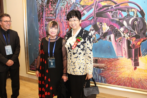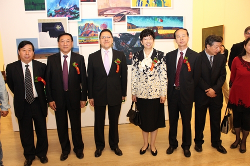 中国文联党组书记、副主席赵实与外国艺术家在展览现场合影 史知元摄