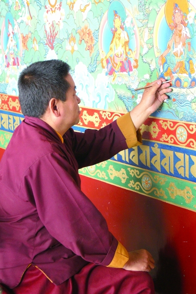 ③西藏昌珠寺的喇嘛正在修复壁画。