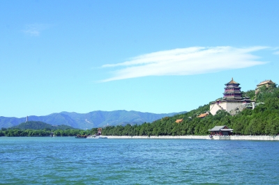 世界文化遗产颐和园中的昆明湖和万寿山。
