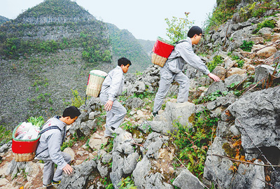 密切联系群众是我们党的最大政治优势。图为贵州长顺县敦操乡的“背篼干部”翻山越岭为大山深处的村民捎带生活用品。